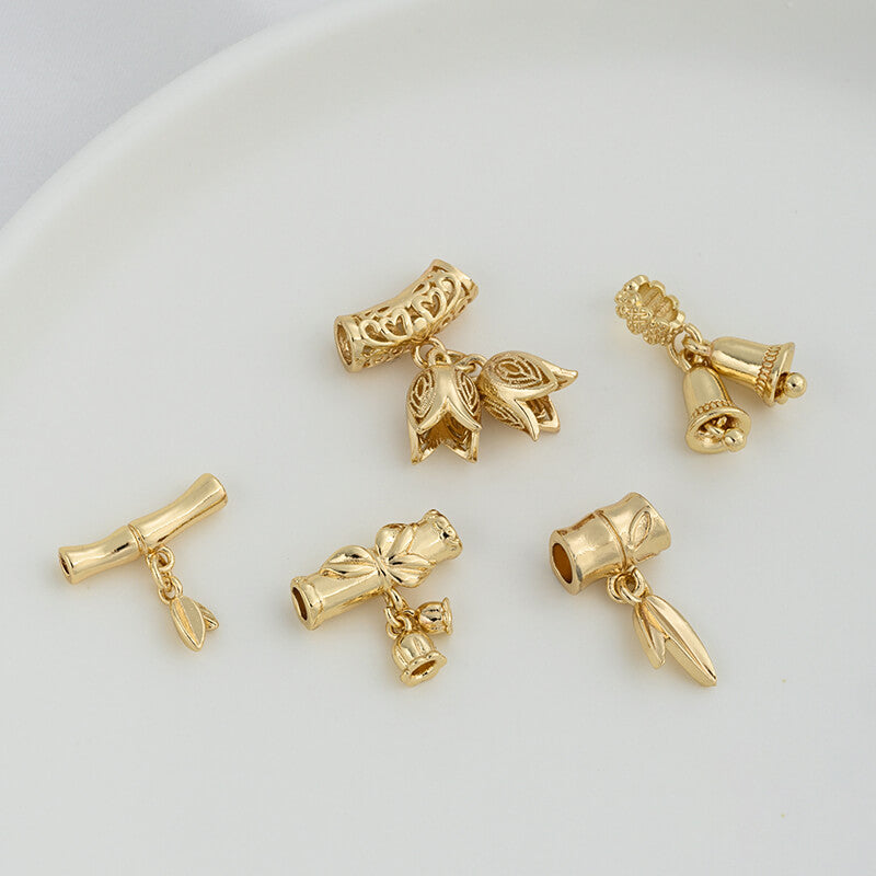 - Bamboo tube with beads and bamboo leaves, garland, lily of the valley bell pendant