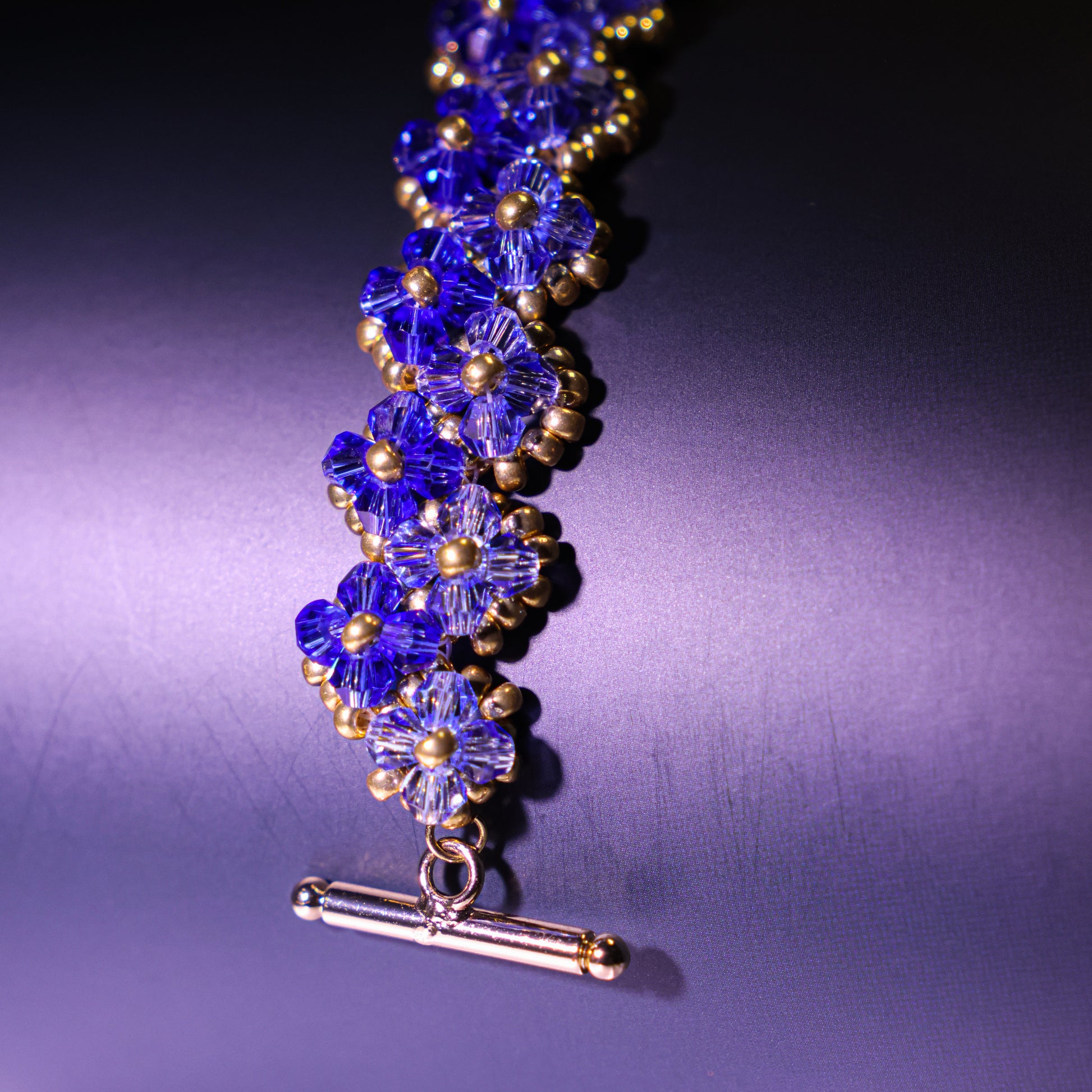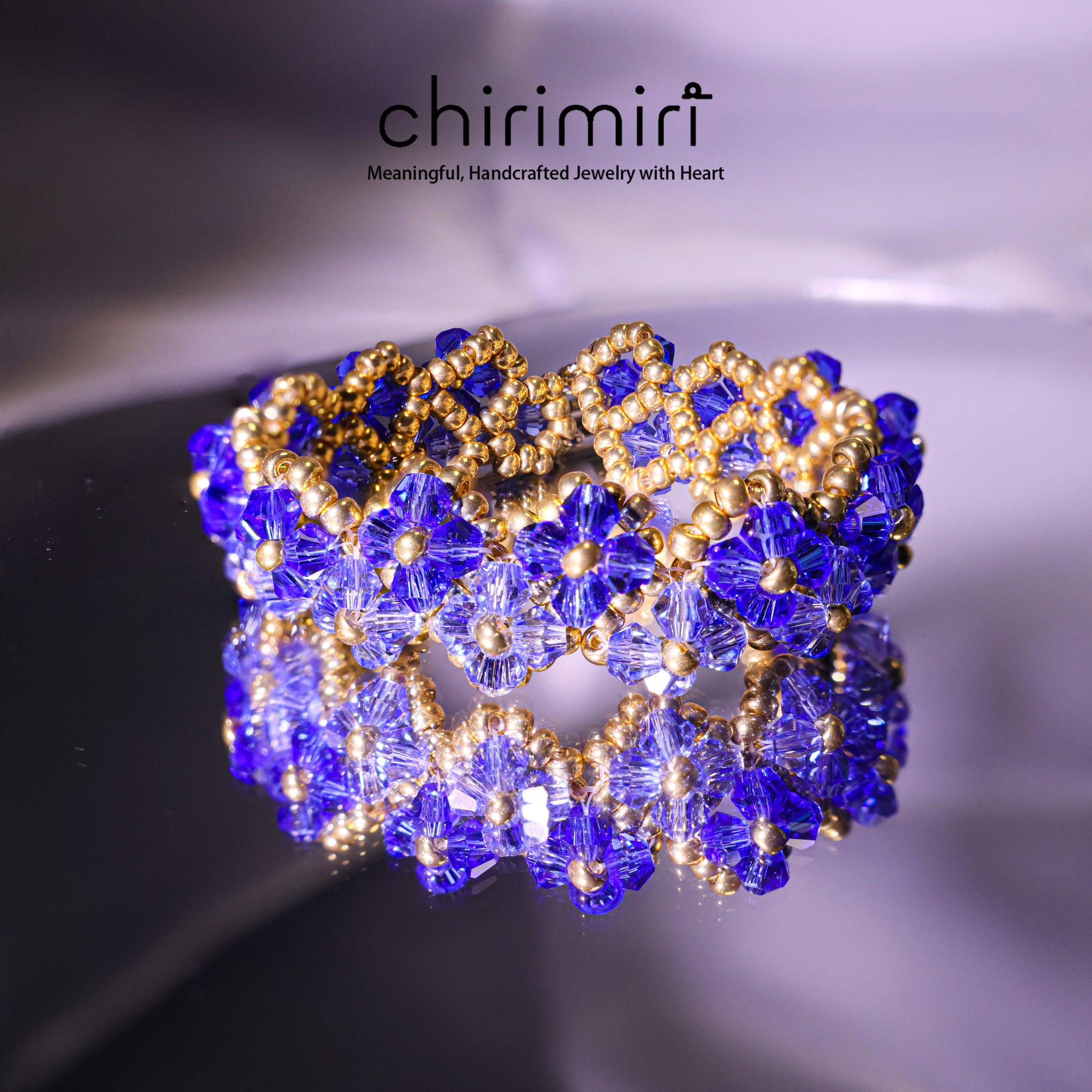 Creation story: Channel the spirit of the sea with the Ocean Muse Bracelet. This handmade crystal bracelet features sapphire-blue beaded flowers paired with golden accents, evoking the elegance of ocean waves and sunlight. Inspired by the mythical sea muse, it's more than just a bracelet—it's a symbol of feminine strength, grace, and independence.