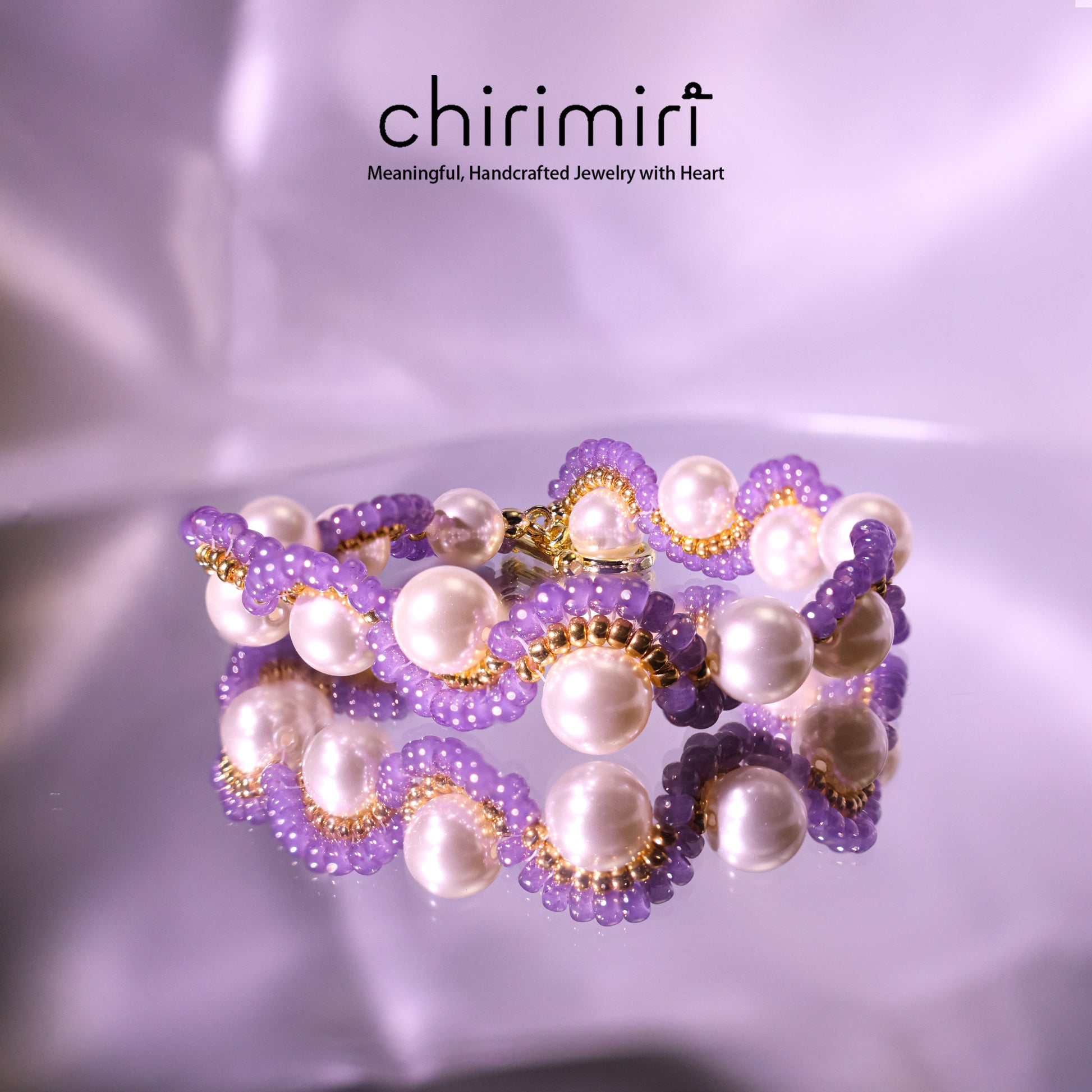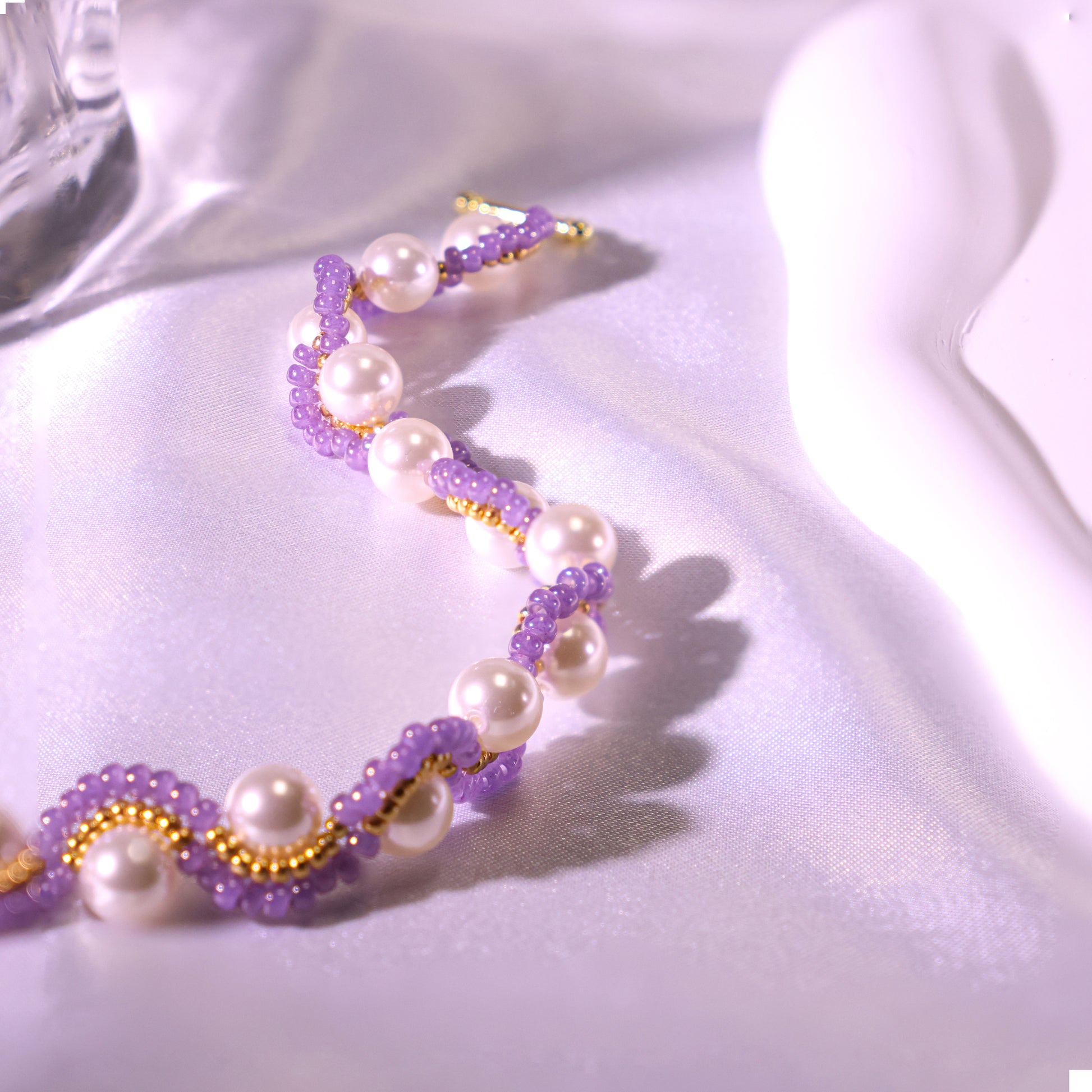Creation story:Elegant and serene, the Moonlit Grace bracelet is handcrafted with luminous pearls, soft lavender seed beads, and gold accents. Its gentle curves and classic color palette evoke the quiet beauty of moonlight and timeless femininity.