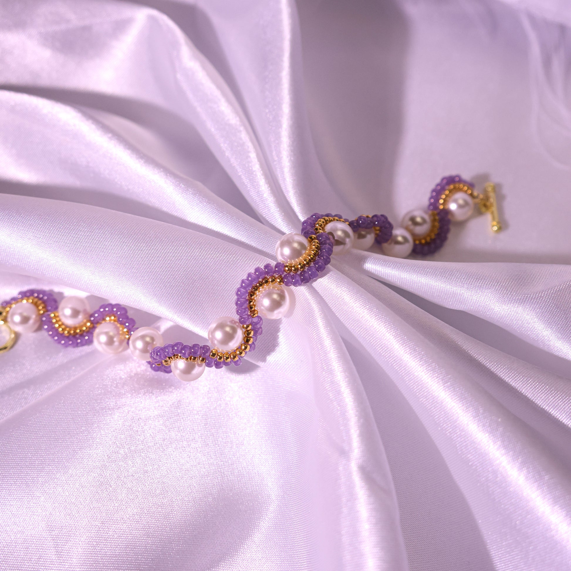 This bracelet isn't just an accessory—it's a graceful statement of poise and strength. The creamy pearls symbolize purity and elegance, while the purple and gold beads bring warmth and nobility.