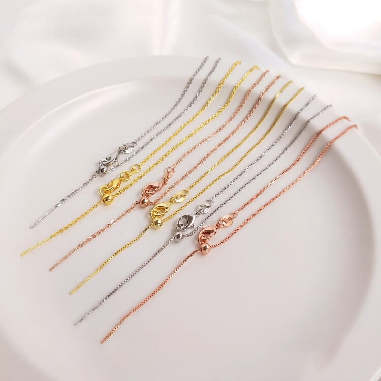 Universal necklace length 46cm; box chain thickness 1mm; O-shaped chain thickness 1.2mm
