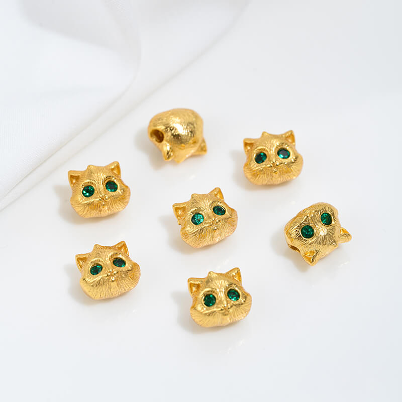 Pearl-inlaid ring cat head spacer bead hanging bead bell chain tassel pendant